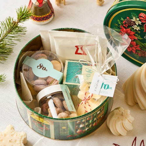 мінімакарони, макарон Шоколад 2 шт, драже Горіхове, кавові дріпи 3 шт, свічка Оленятко